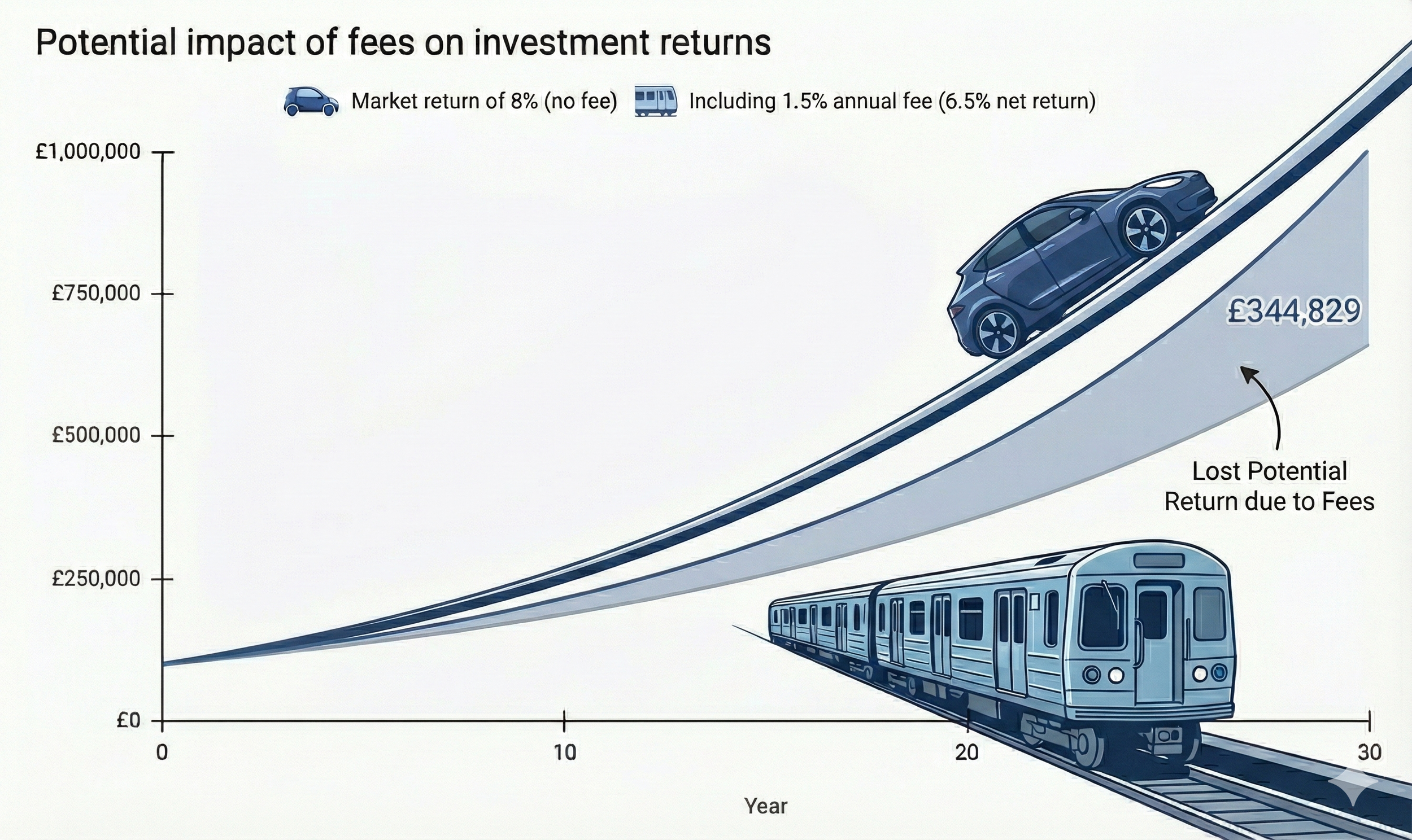 A seemingly ‘small’ annual percentage fee might feel inconsequential today, but thanks to the power of compounding, it can capture a surprising amount of your future wealth.